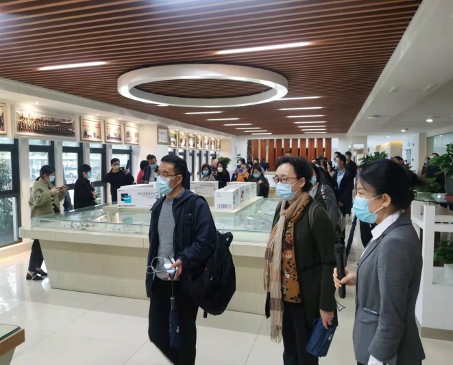 下午2點,大巴車來到位于??趪腋咝聟^藥谷三橫路8號的皇隆廠區。來自全國各地的研發CRO公司以及制藥企業等大約70位高層人士對公司進行了實地參觀和交流。嘉賓們首先對公司展廳進行了參觀游覽,皇隆制藥常務副總史江永女士介紹了公司的發展過程和產品情況。