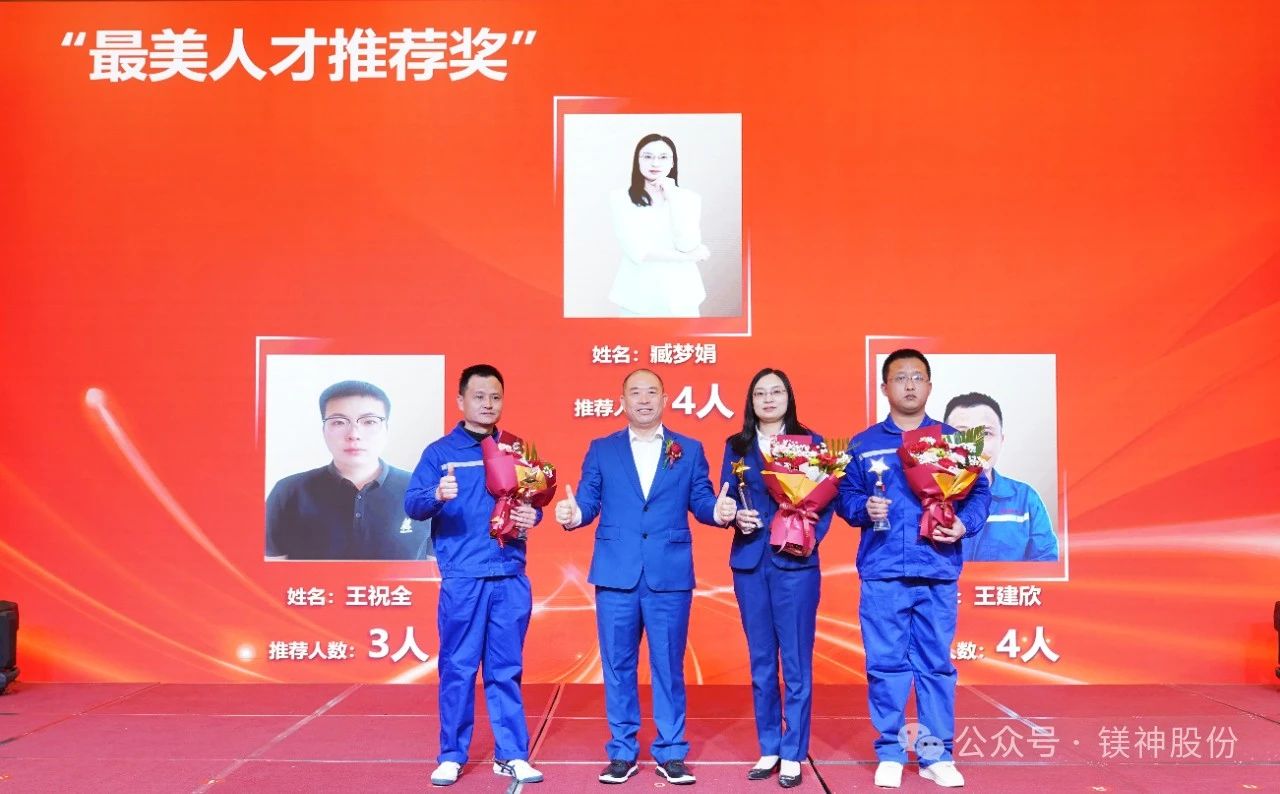 公司為5年以上108名老員工發放了忠誠貢獻獎牌和鮮花,他們與鎂神風雨同舟,用青春見證企業從初創到行業龍頭的發展歷程!