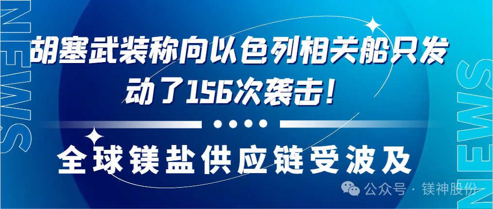 央視新聞消息,當(dāng)?shù)貢r(shí)間5月9日,也門胡塞武裝發(fā)言人葉海亞·薩雷亞發(fā)表電視講話稱,胡塞武裝對(duì)多艘與以色列有關(guān)船只進(jìn)行了打擊。而此前有數(shù)據(jù)指出胡塞武裝稱向以色列相關(guān)船只發(fā)動(dòng)了156次襲擊!5月3日,胡塞武裝宣布:行動(dòng)升級(jí),將襲擊范圍擴(kuò)至地中海,所有向以色列輸送貨物的船只發(fā)起襲擊,此次沖突升級(jí)后對(duì)歐洲乃至全球鎂鹽供應(yīng)產(chǎn)生巨大影響。特別是死海化學(xué)溴業(yè)有限公司(DEAD SEA BROMINE COMPANY LTD),作為全球的鎂鹽供應(yīng)商之一,此次攻擊導(dǎo)致該區(qū)域鎂鹽供應(yīng)中斷,給全球多個(gè)行業(yè)帶來巨大沖擊。